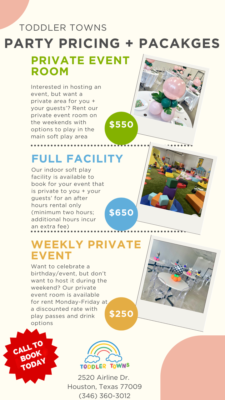 Private Event Room: Book your toddler’s next birthday or special celebration.